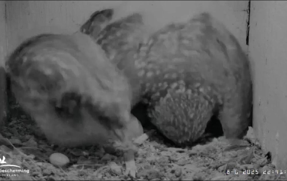 Na 5 dagen afwezigheid vliegt het kuiken rond met een (gekregen) muis en het blijkt nog steeds slim te zijn.