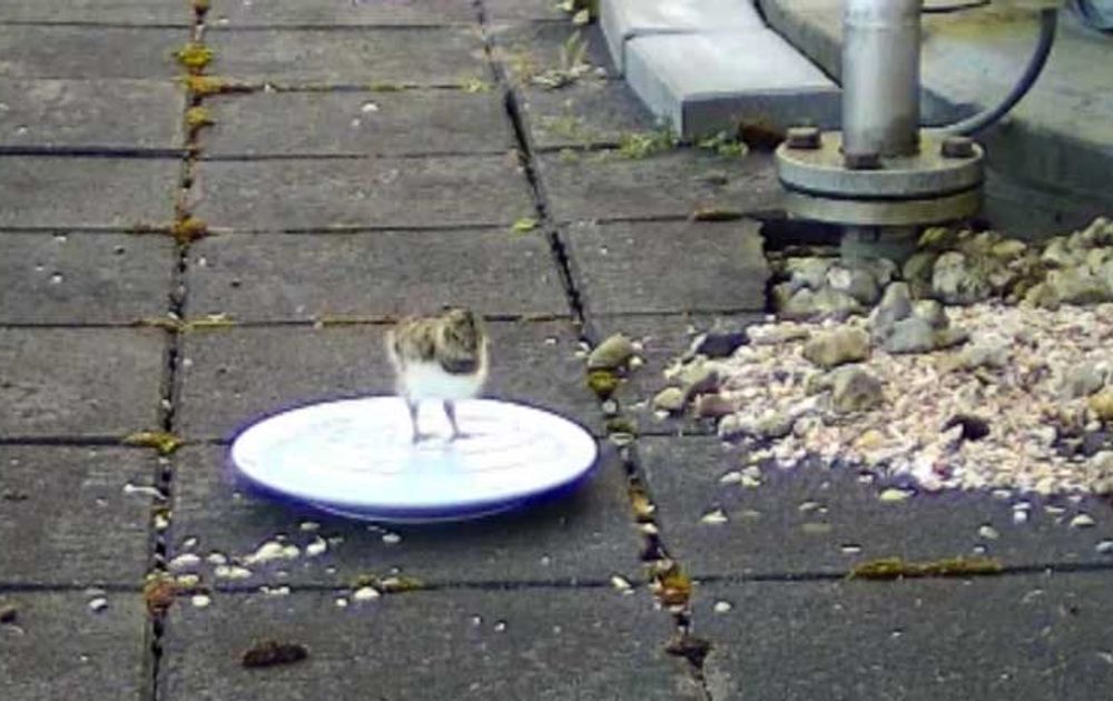 Vanaf ca 8:30 uur ging de familie naar de rechterkant van het dak. Veelvuldig konden we de ouders horen en zo nu en dan zagen we hen ook lopen, maar van de kuikens de rest van de dag weinig tot niets gezien.