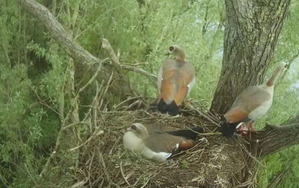Tegen alle verwachtingen in, zijn de nijlganzen gewoon doorgegaan met eieren leggen (het is niet zeker of het dezelfde nijlganzen zijn) En deze keer met succes! De marter heeft het nest niet meer leeggeroofd. Dit betekent dus ook dat het verhaal verder gaat en we toch weer kunnen genieten van dit mooie nest.