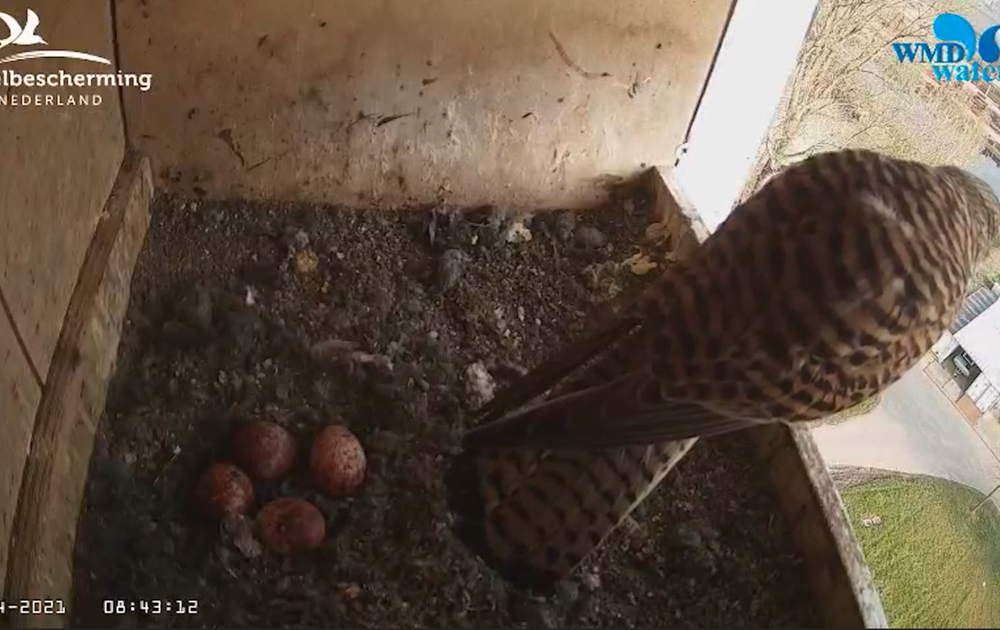 Het vierde eitje is gelegd! Vannacht om half 2 was het weer zo ver. Vrouw torenvalk legde het vierde ei van dit seizoen. Zal de vrouw nog een vijfde en zesde ei leggen? We zullen het binnenkort gaan zien.