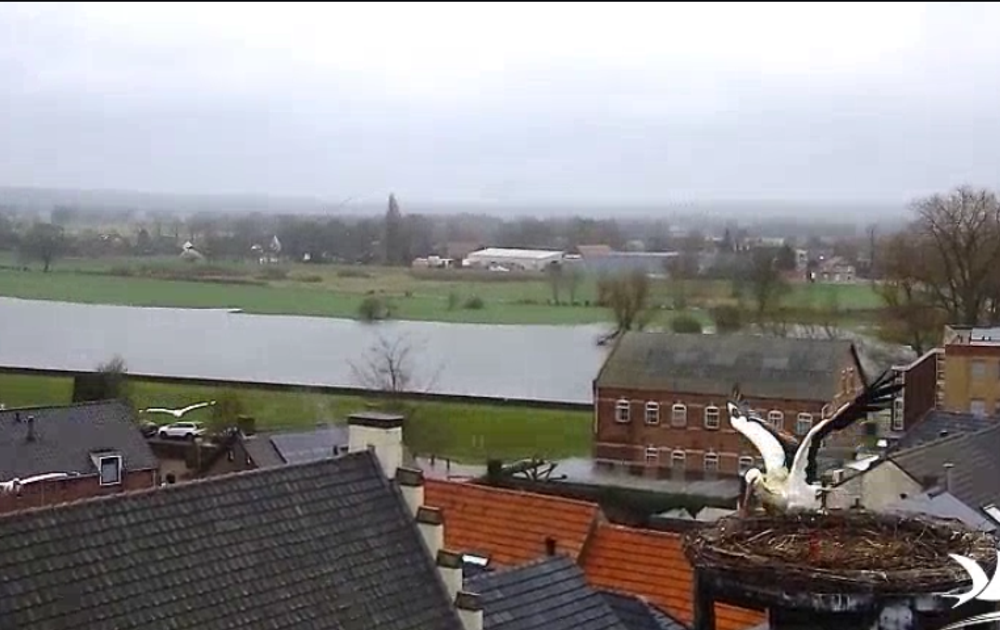 Niet altijd is duidelijk te zien wie op het nest staat. Zo ook om 13:33. Een ooievaar landt op het nest. Geen ring, dus het zou Ma kunnen zijn. Maar of ze het wel echt is ???