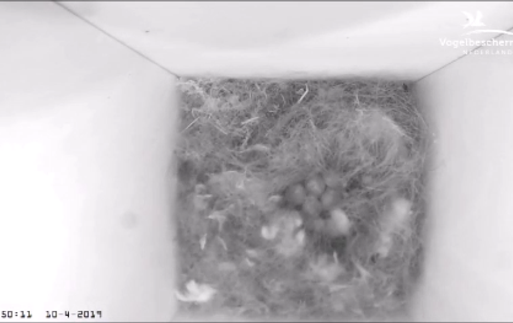 Vanmorgen legde vrouw haar zesde ei. Deze keer dekte ze het niet goed af voordat ze de kast verliet. Zo kregen we ze mooi even in beeld. Het lijken er vijf, maar zijn er echt zes. Even later werden ze wel netjes afgedekt en ging ze nog even slapen. En dan komt man haar halen. Dat wil zeggen, hij probeert haar naar buiten te lokken met een rupsje. Maar of dat deze keer wel lukt...