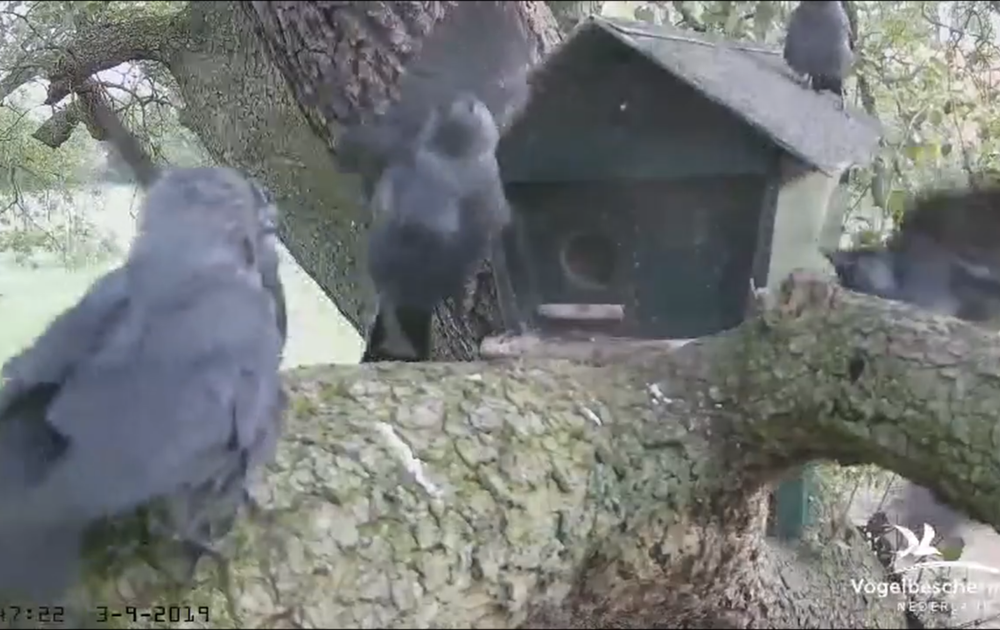 Er is geen steenuil in de nestkast op dit moment. Vrouw steenuil was op 3 september alleen in beeld om ongeveer 6:30 uur en ze kwam in tegen de avond een half uurtje in de nestkast uitrusten.
