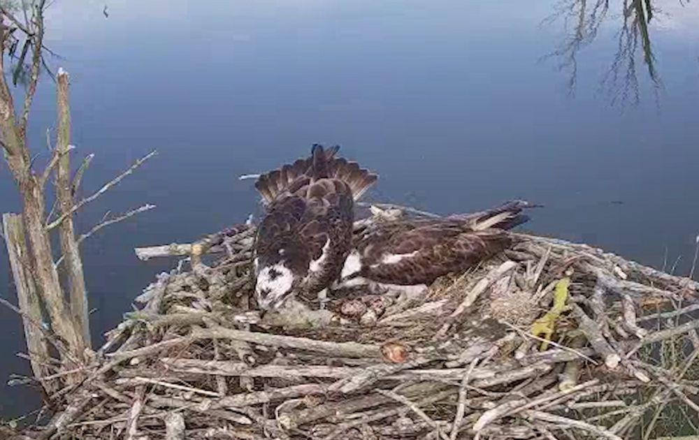 Man had wel zin om lekker te broeden, maar vrouw liet dat niet zomaar toe. Na veel geklooi met takken geeft vrouw zich eindelijk gewonnen en kan man op de eieren zitten.