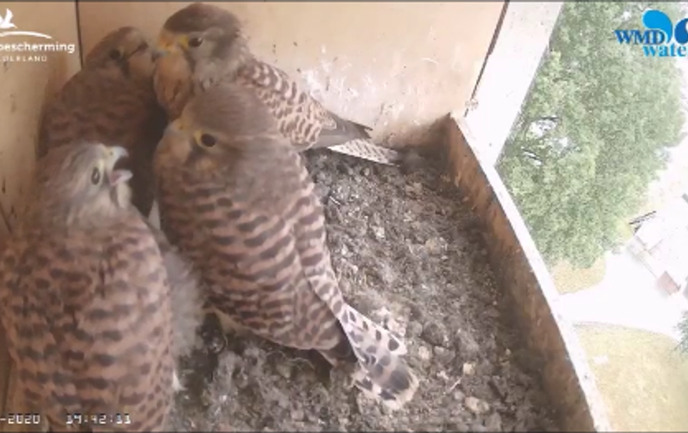 De jongen verlaten vandaag regelmatig even het nest. Op 1 na, die is er blijkbaar nog niet helemaal klaar voor. Maar de anderen komen ook steeds weer terug naar hun geboorte plek. Lekker veilig, en voelt vertrouwd. Home sweet home... Op het moment van plaatsing van deze clip is het vierde jong nog niet thuis, dus die zal bij de ouders in de boom blijven slapen