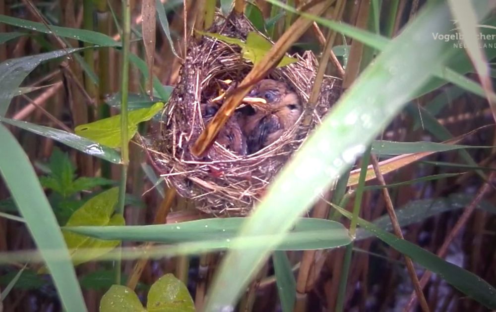 Regen en wind trokken vandaag over het karekietennestje. Veel regen, en veel wind. De zoveelste uitdaging voor de ouders, want hoe hou je in deze omstandigheden je kroost enigszins droog? Dat dat lang niet altijd lukt is in het clipje goed te zien. De kleine karekietjes lijken zich er overigens niet eens zoveel van aan te trekken. Die groeien maar door. Nat pak of niet..