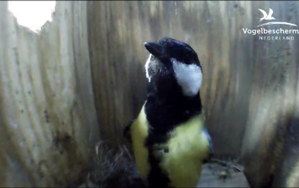 Vanmorgen kwam man zowaar in en aan de nestkast klussen. Althans, ik ga er vanuit dat het haar man is, vooral gezien het feit dat vrouw "hem" laat begaan. Een vreemde vrouw is natuurlijk niet uitgesloten, maar dat had "onze" vrouw vast niet toegestaan