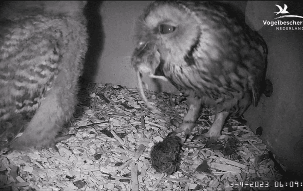 Vandaag komt man bosuil weer eens in beeld. Hij komt zelf een muis brengen. De overdracht lukt, maar wel in twee keer.