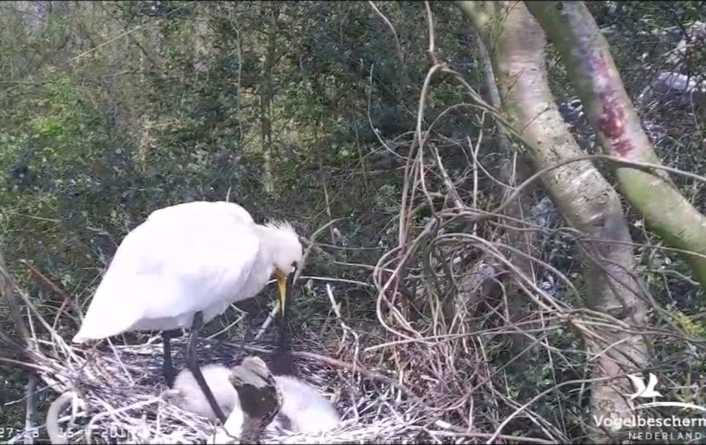 De kleintjes zijn netjes opgevoed. Maar het kost ze heel veel energie en kracht om de flatsen zo ver mogelijk over boord te spuiten. Zo wordt het nest wat minder bevuild