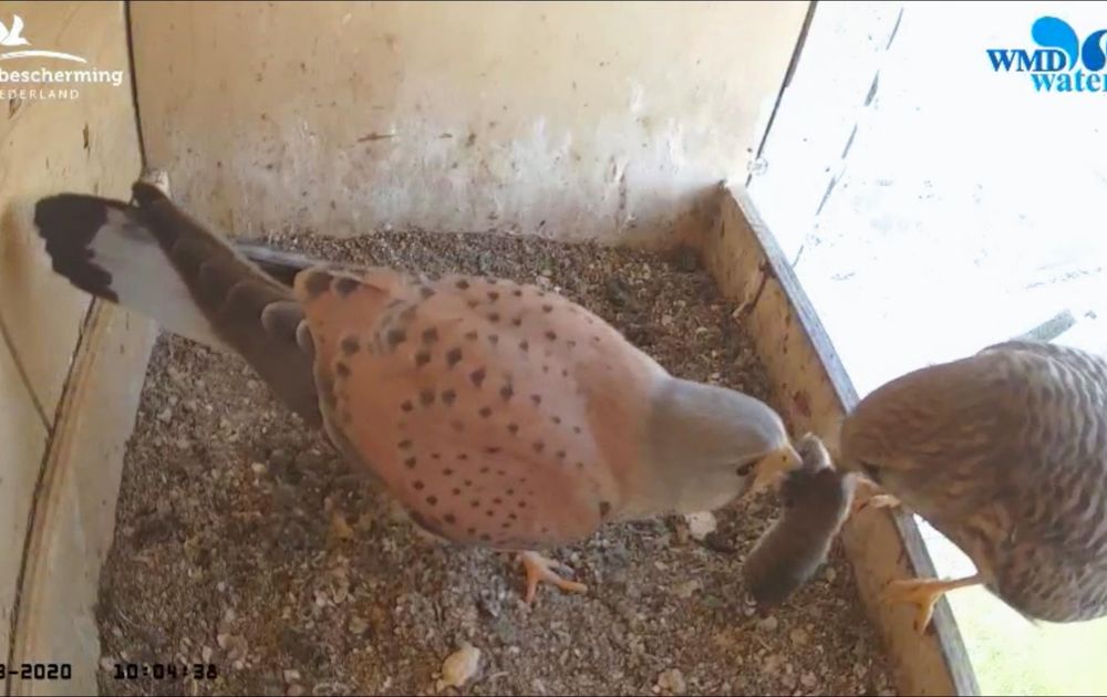 In afwachting zien we uit naar de eerste eieren, want die kans is groot! De valken paren regelmatig, het mannetje brengt regelmatig muizen en het vrouwtje doet regelmatig aan proefbroeden.
