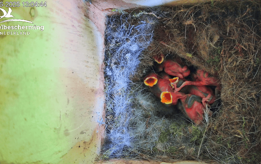 In het nestje van de koolmezen gaat alles zoals het hoort: de ouders vliegen in en uit met voer en de kuikens converteren de rupsjes en andere hapjes - naast poepzakjes - naar aardige groei.