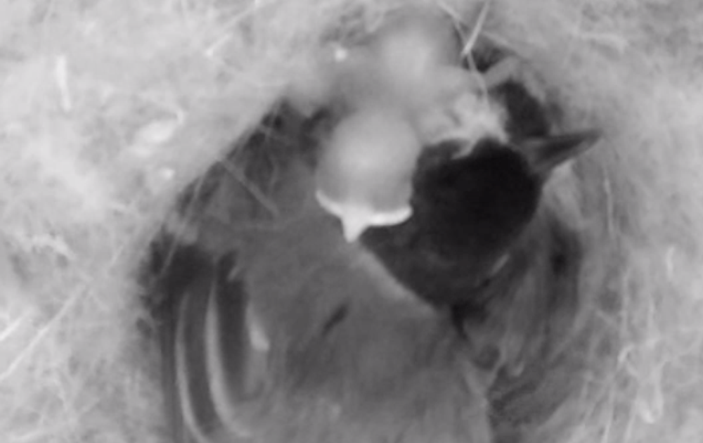 Gisteren en vandaag was het onstuimig weer. Maar voor man en vrouw koolmees is dat geen reden om lekker warm binnen te blijven. Er moeten namelijk 6 snaveltjes gevuld worden! De kleine meesjes worden gevoerd met allerlei lekkers. Soms een makkelijke snack, maar vaak is het een hele uitdaging om die beestjes naar binnen te werken! En als de buikjes vol zitten? Dan slapen de meesjes, soms onder moeders vleugels, maar soms ook lekker tegen haar aan.
