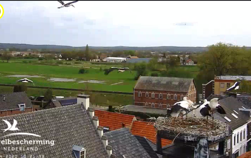 Jonge ooievaars keren later terug uit hun overwinteringsverblijven. Ze komen dan in grote groepen terug. Dit is zo’n groep. Leden van het clubhuis, die ter plaatse waren spreken van een groep van 20 ooievaars. Deze waarneming kan als betrouwbaar beschouwd worden, omdat zelfs van een van de ooievaars het ringnummer afgelezen is door Mihari. Het blijkt een jong te zijn van het nabijgelegen nest “Venzelderheid”. Zie blog “ Wie is nou wie“.
