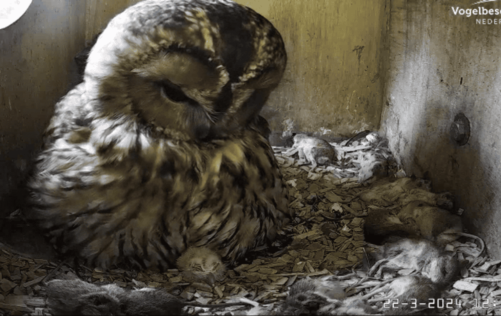 En ja hoor. Deze rakker liet zich eerder zien dan de gebruikelijke eischaal die vrouw bosuil te voorschijn tovert. Dat 'toveren' gebeurde een uur later.