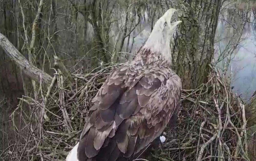 De zeearend is vandaag op het nest gekomen. Maar de haviken hadden dat nest al uitgekozen om hun eieren in te leggen. Hoe gaat dit nu verder? Spannend!