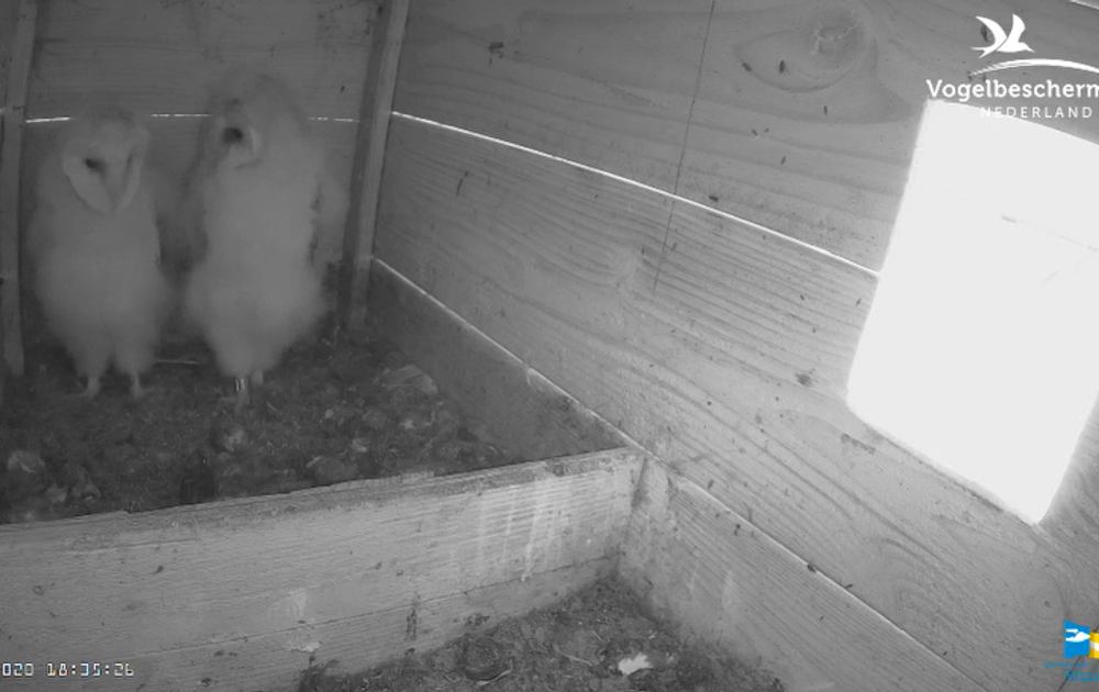 De kuikens zijn druk aan het oefenen, nog een paar dagen en ze vliegen voor het eerst uit.