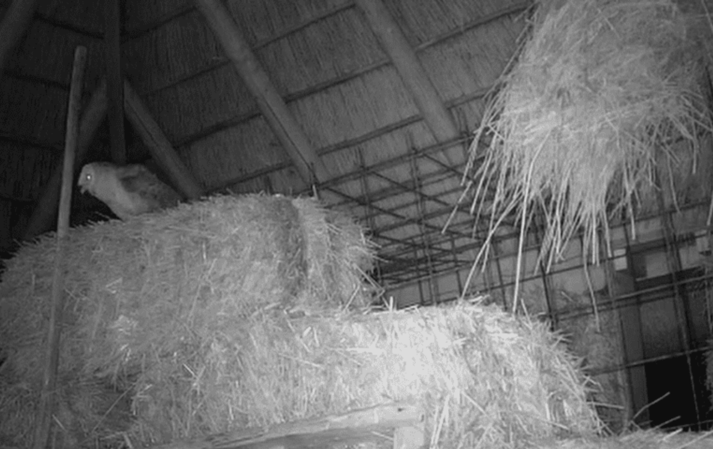 Met al die regen is het lastig muizen vangen. Gelukkig zijn er ook nog kikkers en een droge hooiberg, waar je na de maaltijd ook nog je snavel kunt schoonmaken aan een hooivork.