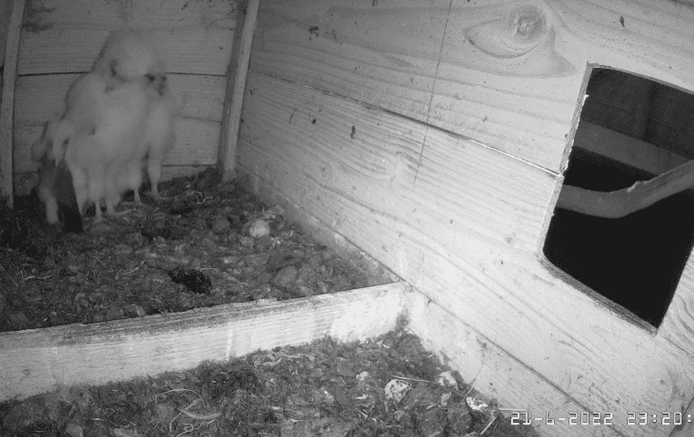 Later in de uilenkast laat K4 zien dat hoewel je de kleinste bent, je ook van je grote broer/zus best een muis kunt afpikken. Het duurde daarna even voordat K4 er achter was, dat je het best die muis naar binnen kunt werken door bij de kop te beginnen.