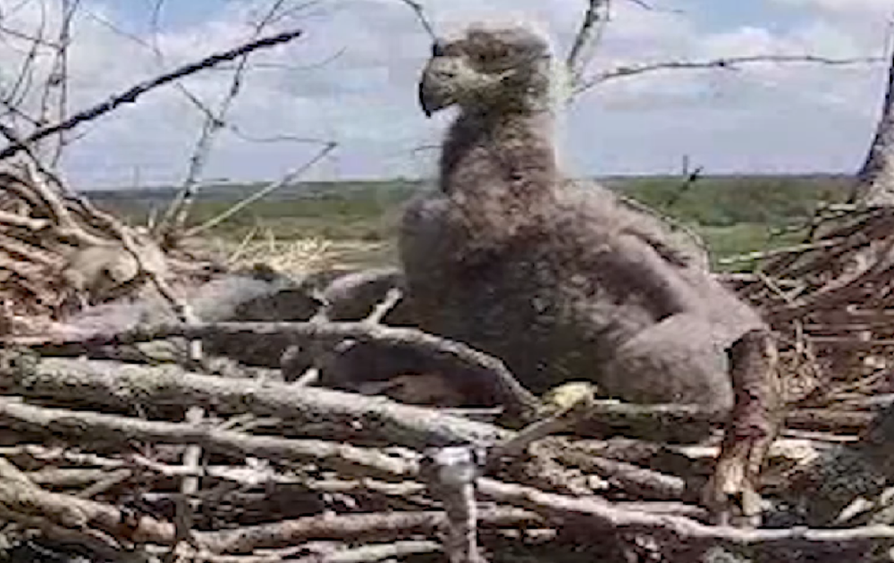 Groeien doen ze snel! De twee kuikens die al op kleine arenden beginnen te lijken.