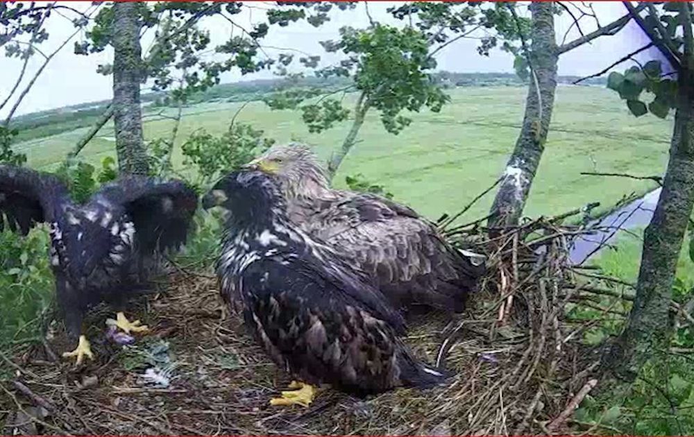 Acht weken oud zijn ze vandaag. We mogen nog wel zo'n vier weken naar ze kijken terwijl ze sterk genoeg worden om weg te kunnen vliegen. Oefenen en veeeel slapen.