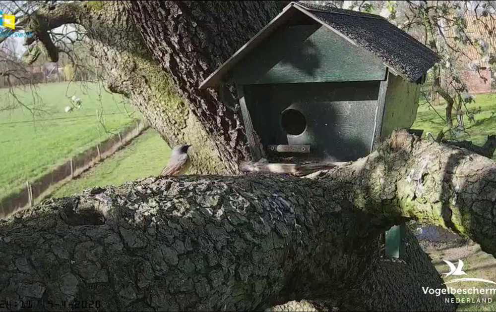 Eerst valt het nog een beetje tegen, daarna wordt het kleuriger. De gekraagde roodstaart is waarschijnlijk net terug uit Afrika en zoekt de buurt af naar nestgelegenheid. Hij verscheen direct hierna op de kauwtjescam.