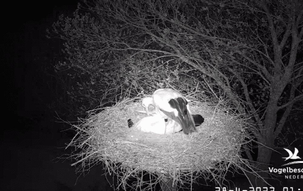 Pa en Ma liggen vannacht gezellig naast elkaar. Misschien een probleem voor de wisselonderzoekers om te weten wie nu aan het broeden is, maar het ziet er wel heel knusjes uit.