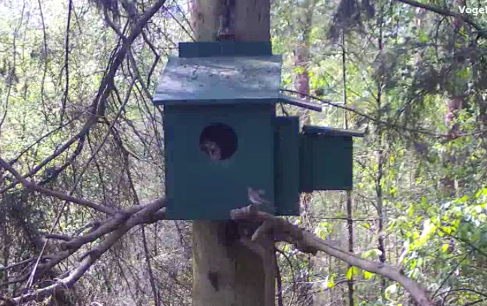 Ons kuiken heeft vroeg in de middag veel belangstelling voor de buitenwereld. Een goed teken? In elk geval valt die nieuwsgierigheid op, want enkele kleine zangvogeltjes slaan alarm. Dreigt er gevaar nu? In elk geval goed in de gaten houden. Dus koekeloeren naar elkaar.