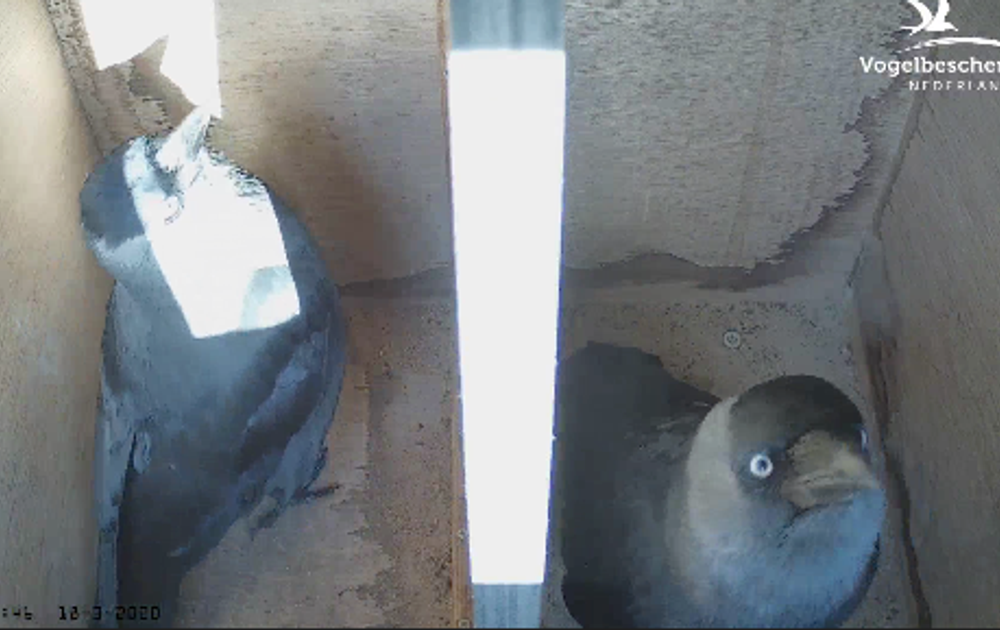 Buiten de kast is het weliswaar een drukte van belang, maar wat doen die kauwen eigenlijk als ze in de kast zitten? Het lijkt erop dat ze deze twee-onder-een-kapper aan een grondig onderzoek onderwerpen! Je betrekt natuurlijk niet zomaar een woning zonder eerst een bouwinspectie te hebben gedaan...