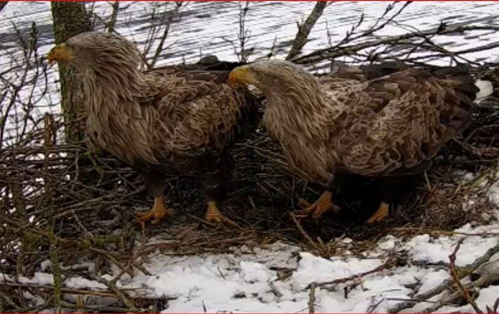 Al in november 2024 werd het zeearendpaar dat we al zo veel jaren volgen gezien terwijl ze takken aansleepten om hun oude nest te repareren.