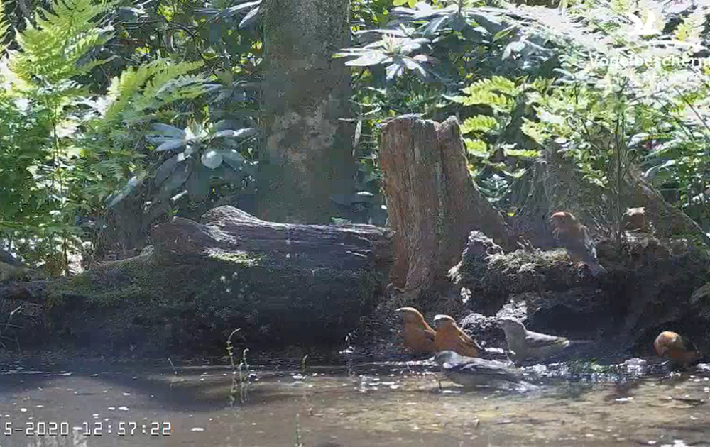 Maar liefst 10 kruisbekken bezochten de vijver, een unieke ervaring.