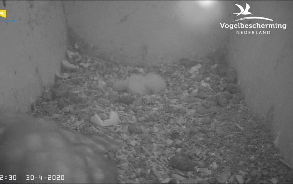 Ook het tweede en derde steenuilkuiken hebben zich bevrijd uit de ei-schaal, om 7:44 uur en 14:04 uur.