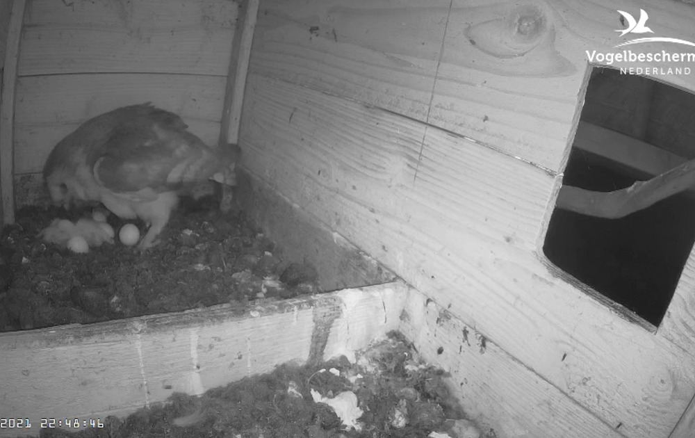 Kuiken drie is rond 13.50 uur uit het ei gekropen, pas in de loop van de avond kregen we vrij zicht op het drietal.
