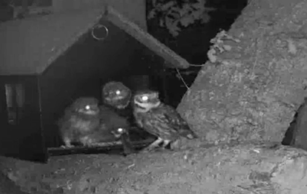 De eerste stapjes van de kuikens buiten de nestkast. Nog niet ver weg, maar in totaal waren twee of drie verschillende kuikens 33 minuten lang buiten.