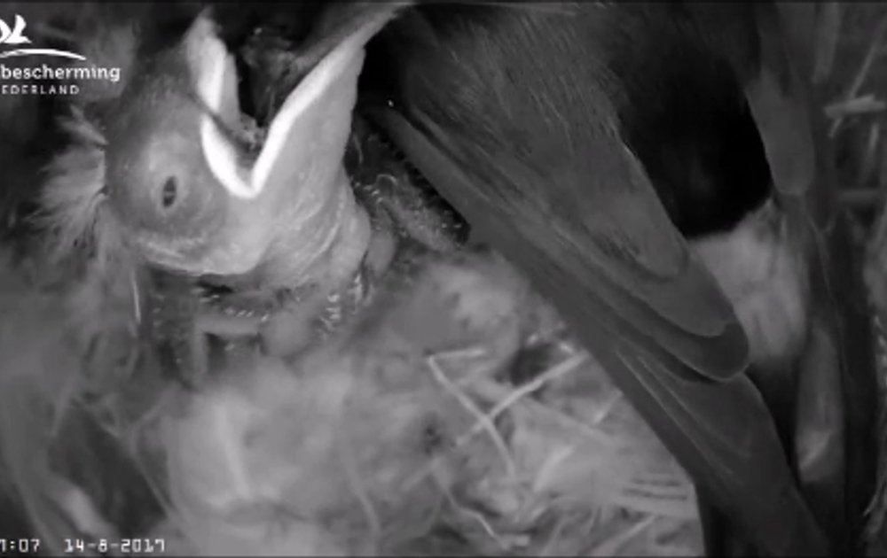 De ouders en grote kuuk zorgen goed voor de 2 kuikens. Die groeien als kool. 7 En 8 dagen oud zijn ze vandaag. Hier en daar zie je de veertjes al uit de spoeltjes komen en ook de oogjes gaan al wat open
