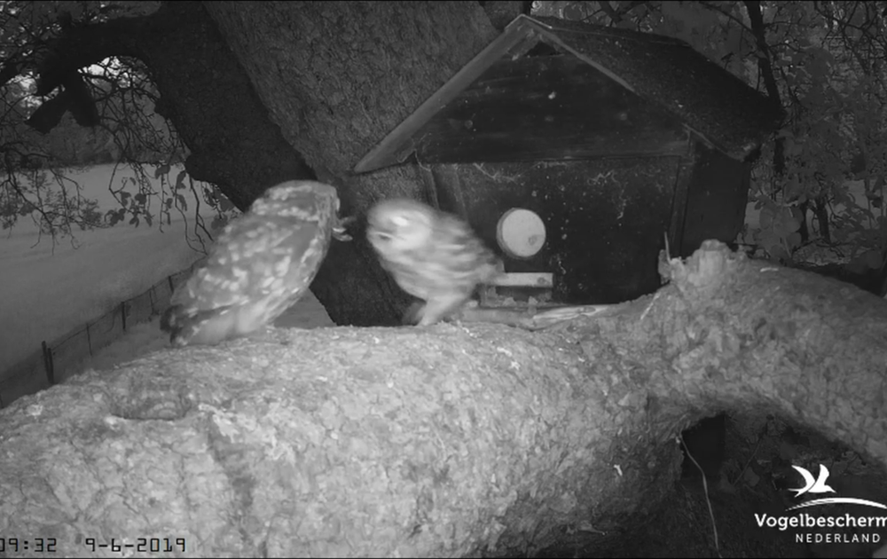 Jonge steenuilen op stap krijgen geen lunchpakket mee. Als ze weg zijn, gaan man en vrouw de steenuilkuikens eten (meikevers) brengen. Na een controle of de nestkast echt leeg is.