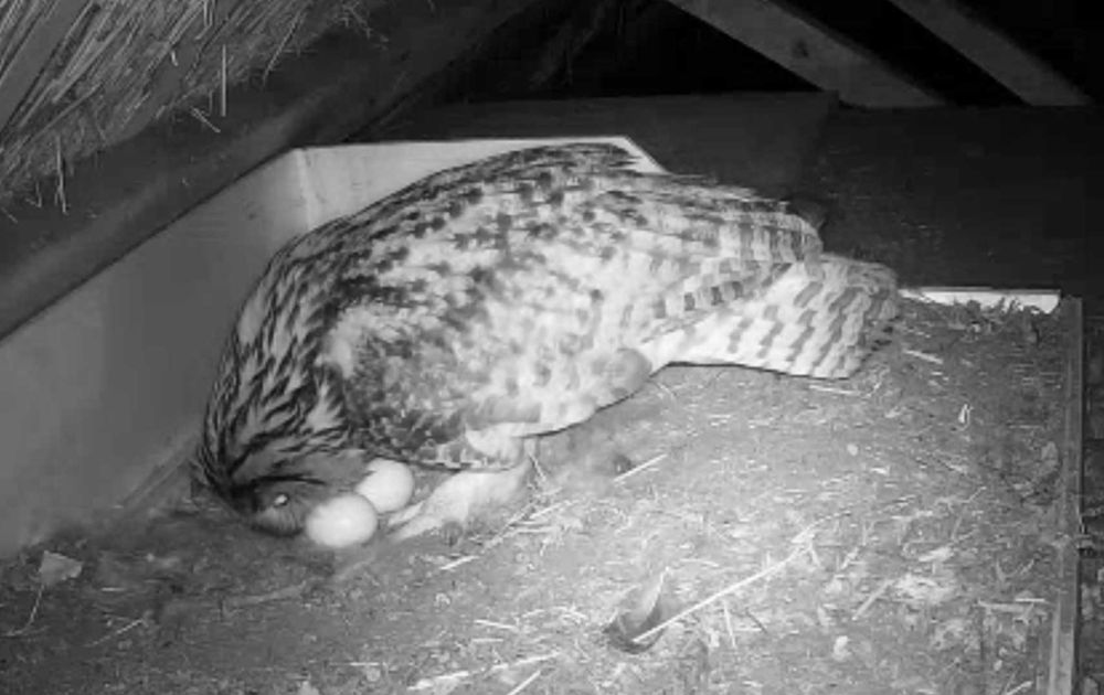 20 minuten later komt hij terug met de prooi. Nu is Vrouw wel geïnteresseerd.