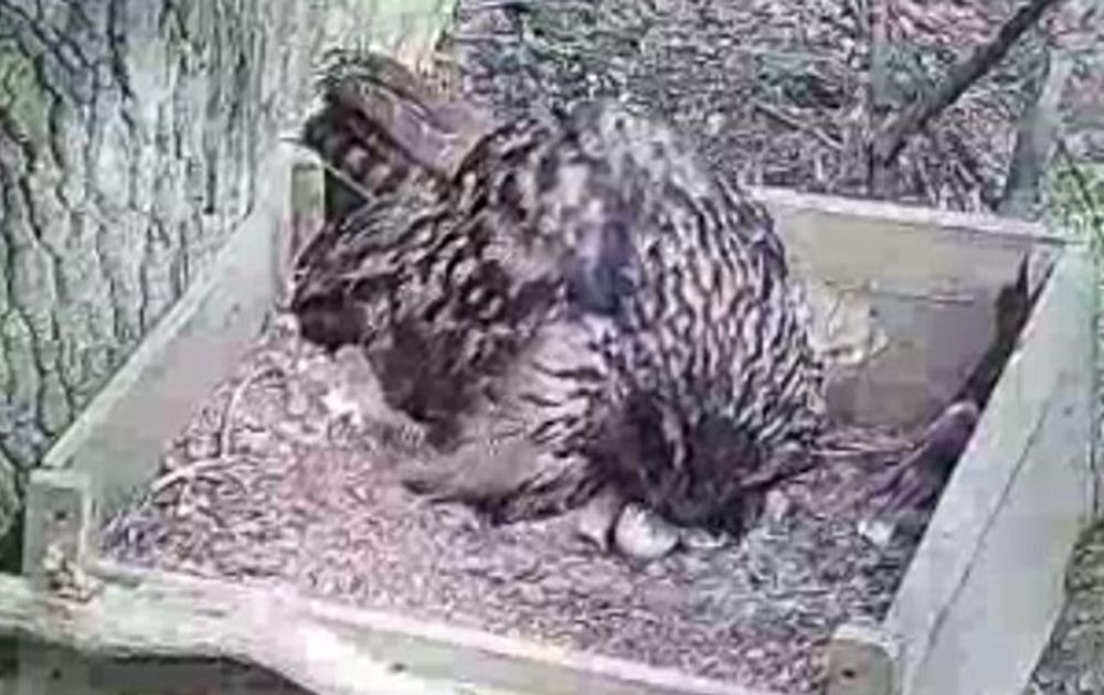 V wilde het kuiken ook ontvangen in een nette en opgeruimde nestkist. Gisteravond en vannacht had ze het er maar druk mee.