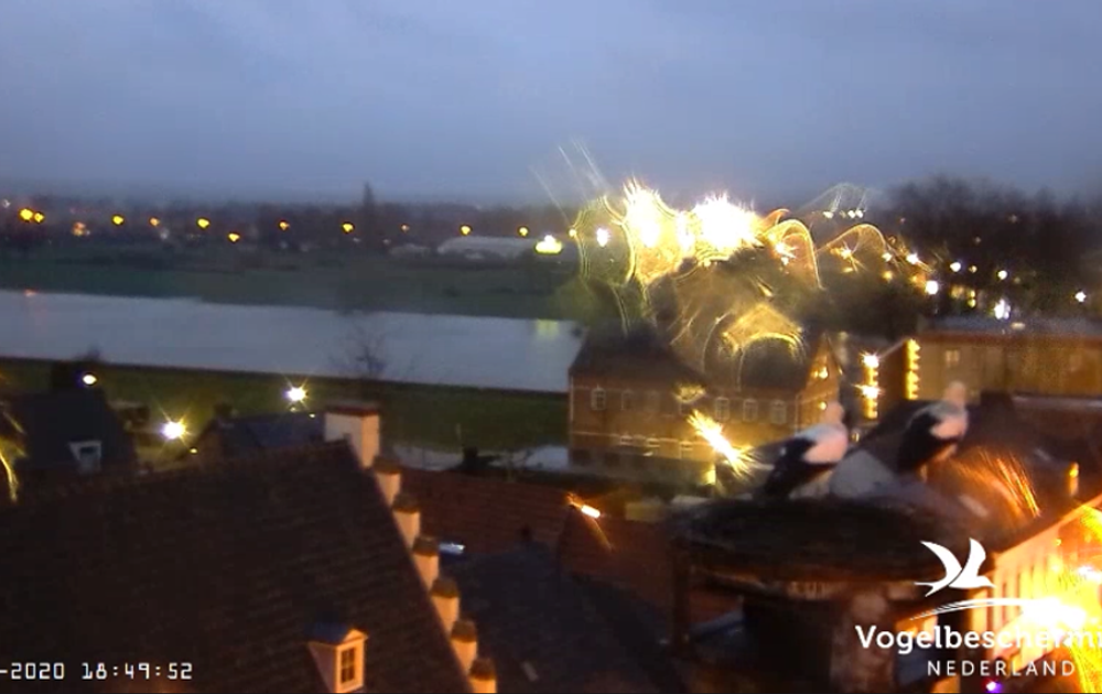 Mooi weer was het niet voor de ooievaars. De hele avond regen. Maar door de druppels op de camera krijgen we mooie effecten te zien.