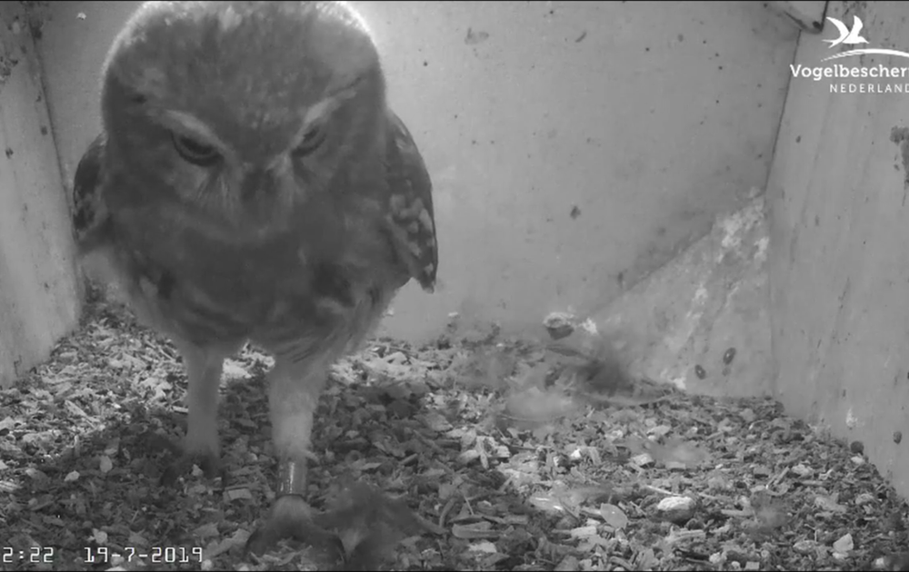 Vandaag 19 juli zijn de jongen weer uren bij en in de nestkast, maar niet tegelijk.