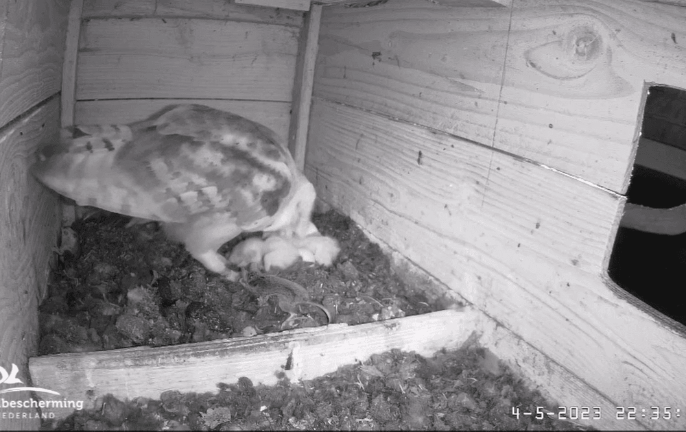 V maakt even haar een rondje door de hooiberg en M maakt gebruik van de gelegenheid om zijn kroost dichterbij te bekijken
