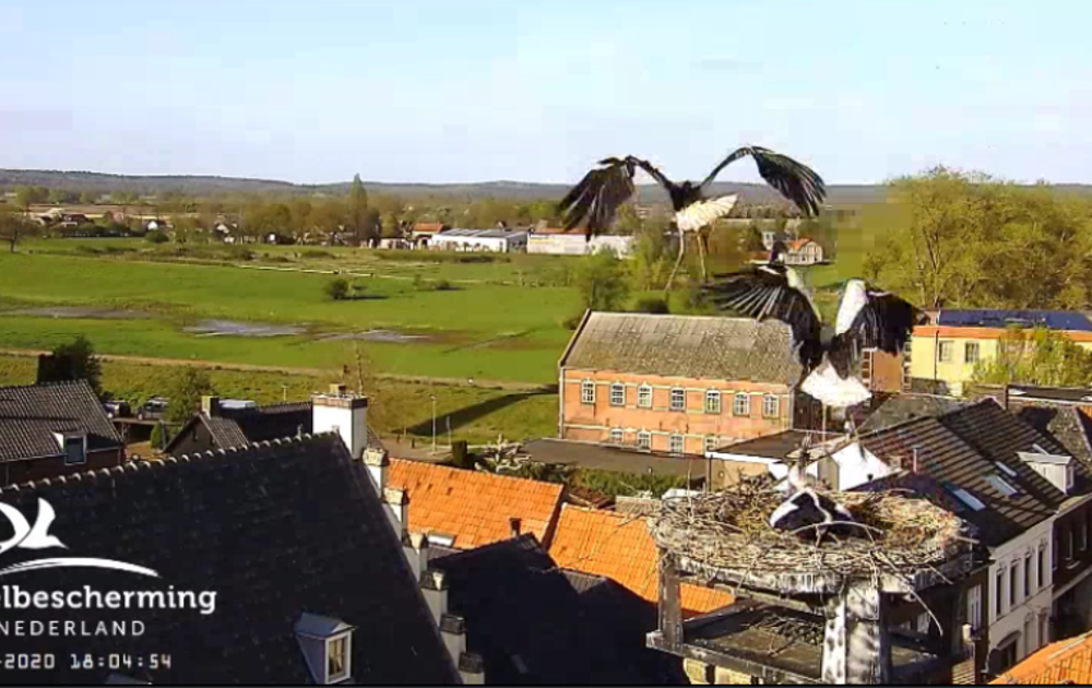 Dit hele seizoen zijn er dagelijks vreemde ooievaars die het nest benaderen. Was Ma in het begin gelaten, terughoudend, nu is ze veel feller, zeker na het incident van de vergissing (Wat een vergissing). En hoe fel, is te zien in deze clip.