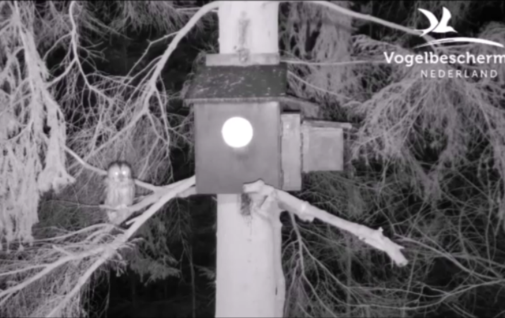 Vrouw bosuil is niet thuis; zij komt een paar minuten later binnen om de rest van de dag (tot een uur of 18.00/19.00) binnen te blijven.