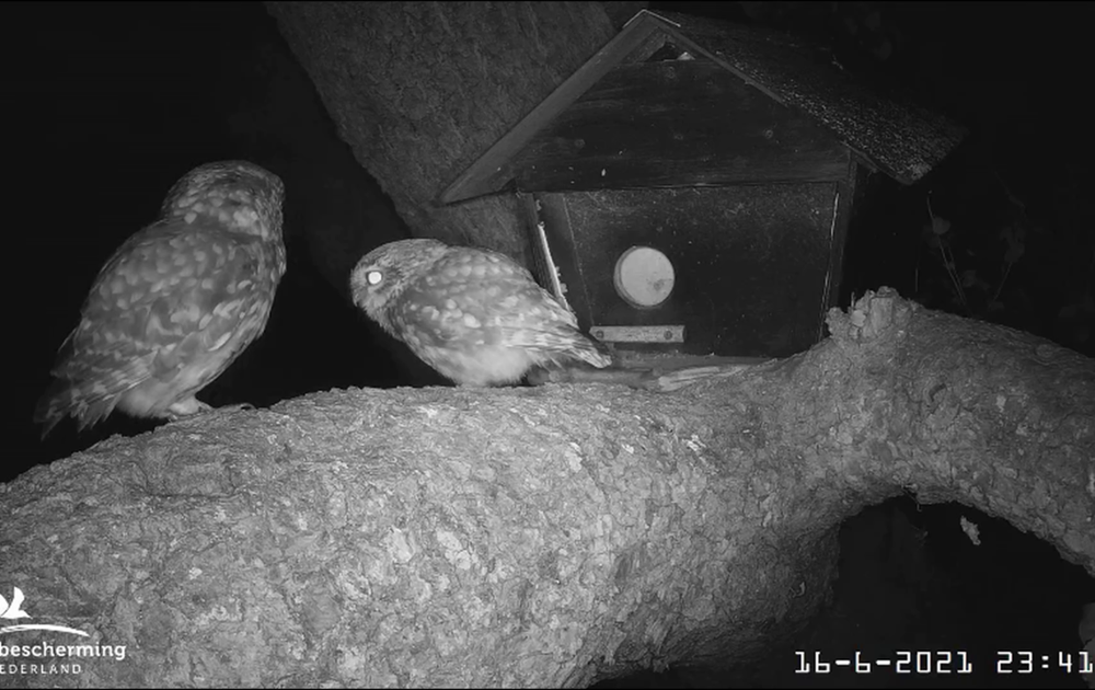 Op 16 juni rustte en poetste vrouw steenuil overdag meer dan 7 uur in de kast. Man mocht daar 10 minuten bij zijn. In de avond gingen man en vrouw apart op pad (voor zover dat in beeld was te zien), maar laat in de avond kwamen ze elkaar weer tegen voor de nestkast.