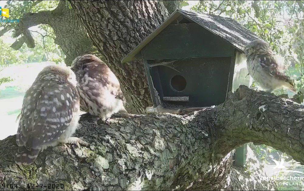 Op 12 juli volop in actie. De nestkast verbouwen en zelfs de jongen zelfstandigheid bijbrengen.
