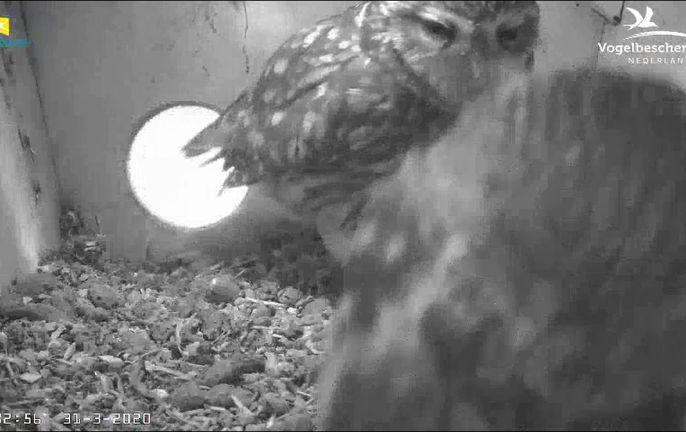 Vrouw steenuil verwent eerst man. Ze gaat zelfs naar buiten kijken, terwijl hij bij het ei mag zijn. Hij doet er niet veel mee. Tenslotte maant ze hem zonder omwegen om voedsel te halen.