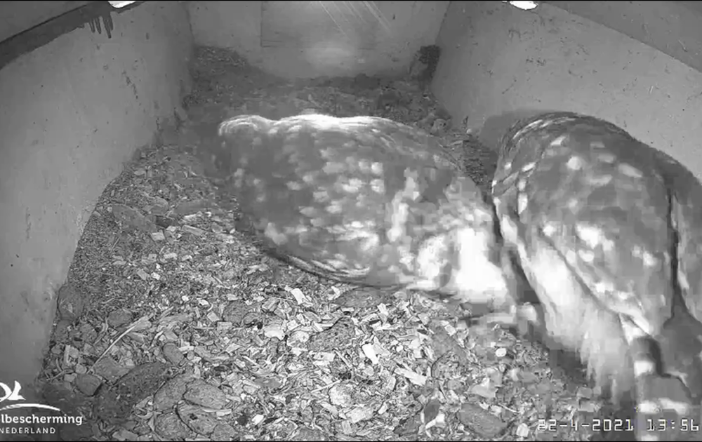 Vrouw steenuil jaagt man de nestkast uit. Gelukkig voor hem is het mooi weer