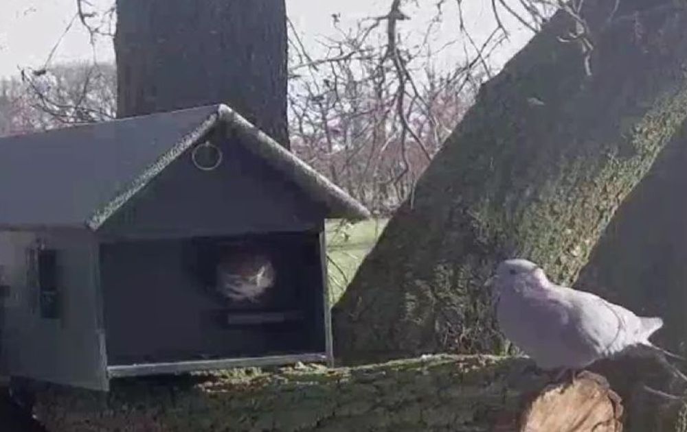 Man steenuil is belangrijk om de omgeving van de nestkast veilig te houden. Hij kan dat nu mooi combineren met zijn hobby: zitten in het voorjaarszonnetje.
