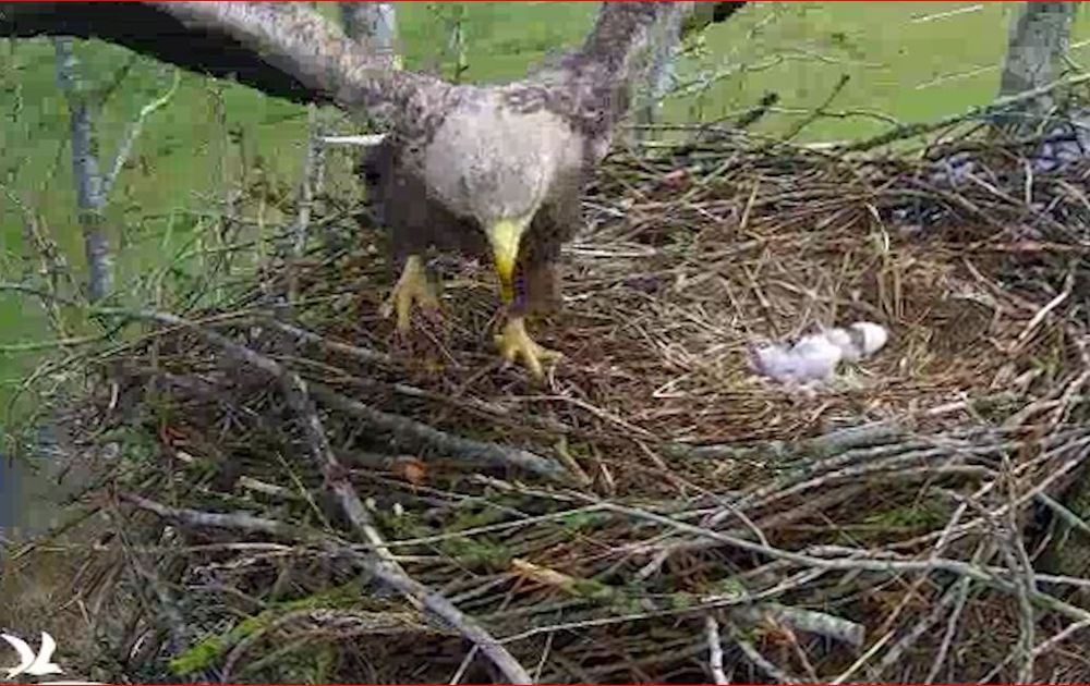 Bij nog eens kijken en luisteren valt op dat het tweede kuiken vannacht ook al bezig was uit het ei te kruipen. In de loop van de ochtend was het zo ver. Toen vader kwam kijken zag hij al twee pykjes.