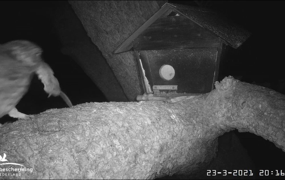 Vrouw steenuil weet nog van vorig jaar, dat ze man niet alleen bij een prooi moet toelaten.