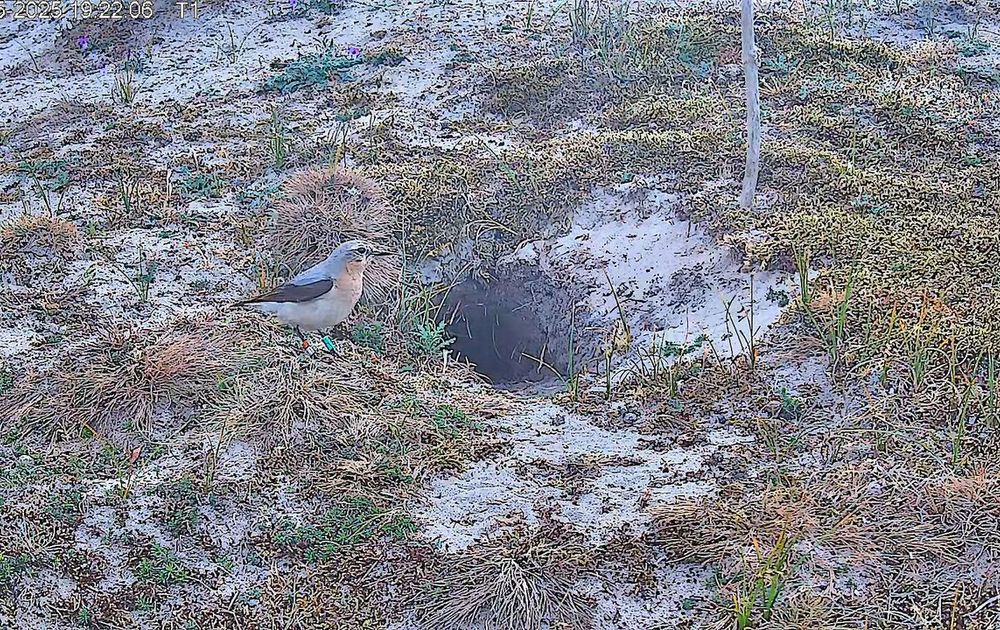 Wij zagen geen paring en geen eieren leggen. Wij zagen alleen een tapuit met een typerende mannelijke verschijning en gingen er daarom vanuit, dat de andere tapuit een vrouw is, hoewel de tapuit met de groene ringen ook mannelijke kenmerken heeft.